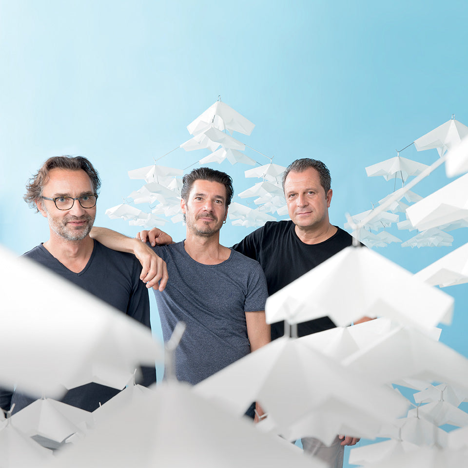 A lighting family where mechanical intelligence turns into an expression of beauty. Three metal rods are inserted into the sphere through an ingenious mechanism inspired by the art of watchmaking, thus forming the frame that supports the glass sphere. Movable rods open inside the diffuser and support the glass sphere as a result of the extremely precise geometric connections and balanced weights. Function and appearance are also in perfect harmony in the diffuser. Embossed horizontal stripes hide the source from view, reduce glare and provide more even light distribution. The device combines tradition and innovation, the ancient knowledge of the art of glass blowing, with a future-oriented technological perspective. Atelier Oi's projects are always imbued with intelligence, quality, emotion, poetry and, in particular, respect for the values that are so important to Artemide: sustainability, ethical responsibility and production responsibility. Glass and frame are two free elements brought together by a simple and easily reversible mechanical assembly; The optical system produces a comfortable and highly efficient light, the diffuser is achieved in a single production process, all production and maintenance features are calibrated to obtain a perfectly sustainable product. Elegance, poetry and ethics, which also stand out in this project, are the distinguishing features of Atelier Oi's work; He is able to combine and bring together materials, visions and technologies into a "form" that is the full result of all these aspects, and in doing so, convey great emotion.