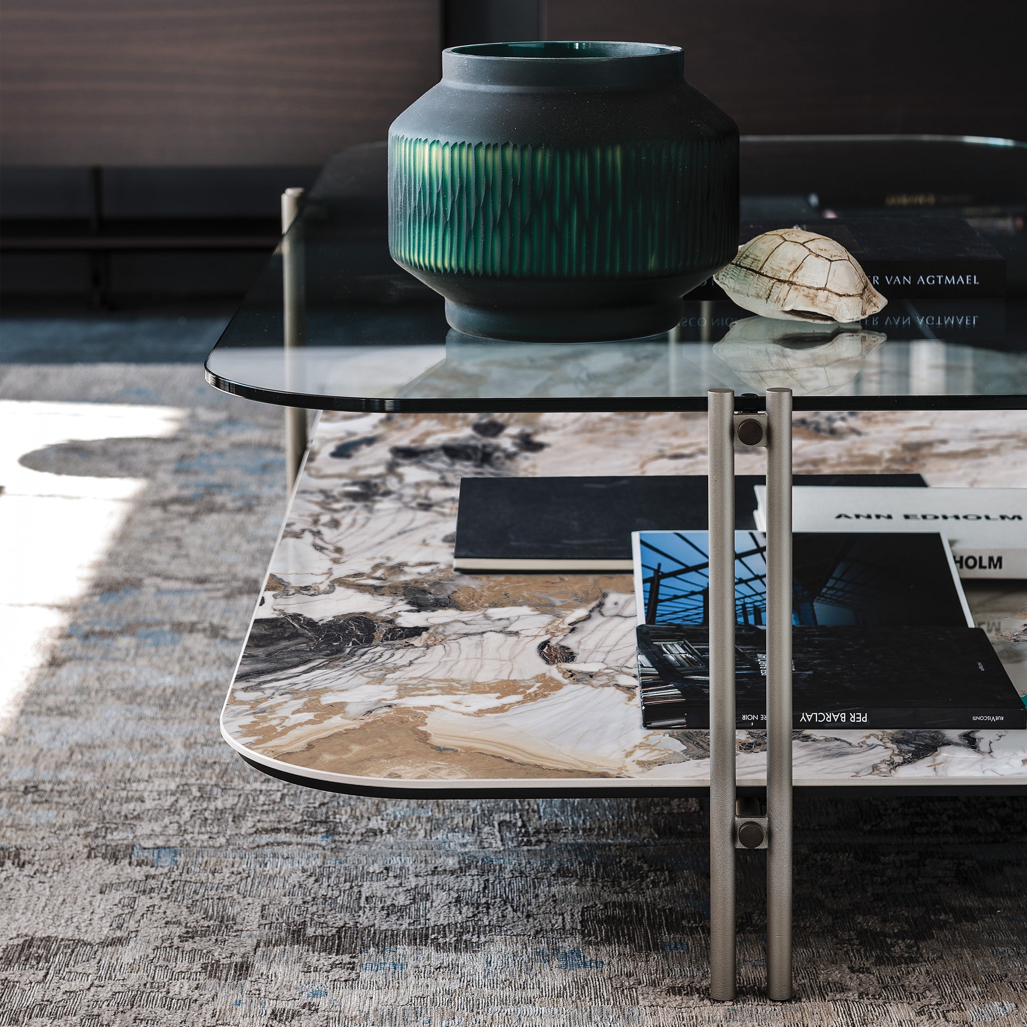 Cattelan Italia'nın Biplane sehpası, işlevsel ve modern sadelikle doludur. Sehpa, iki kademeli bir yapıya sahiptir. Üst kısım füme cam yapısına ve alt üst kısım ise keramik seçeneğinde mevcuttur. İçecekler, atıştırmalıklar, uzaktan kumandalar, okuma materyalleri ve dekor parçaları için bolca yer vardır. Kontrastlı yüzeyler, sehpayı muhteşem bir merkez parçası yapmak için birbirine karşı öne çıkıyor. Sadece en iyi malzemelerin kullanılması sayesinde sehpa uzun süre dayanıklılığını korur.