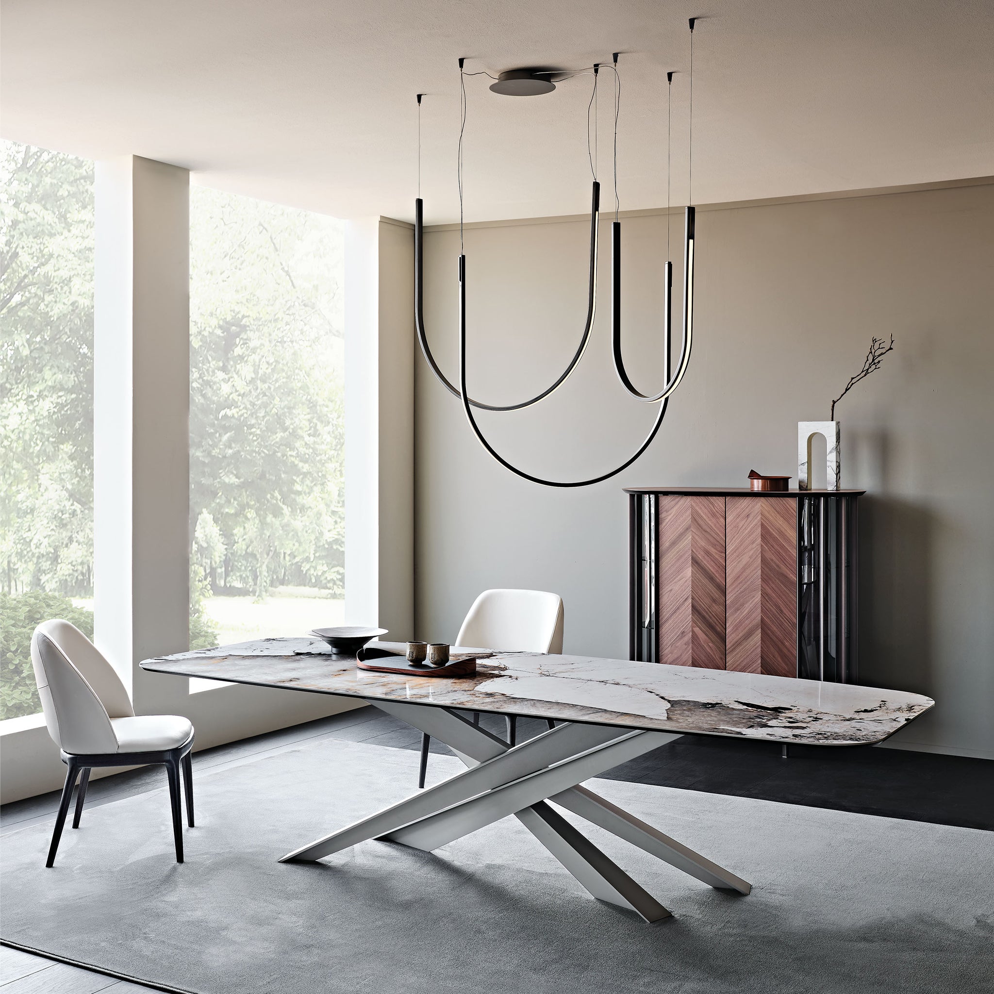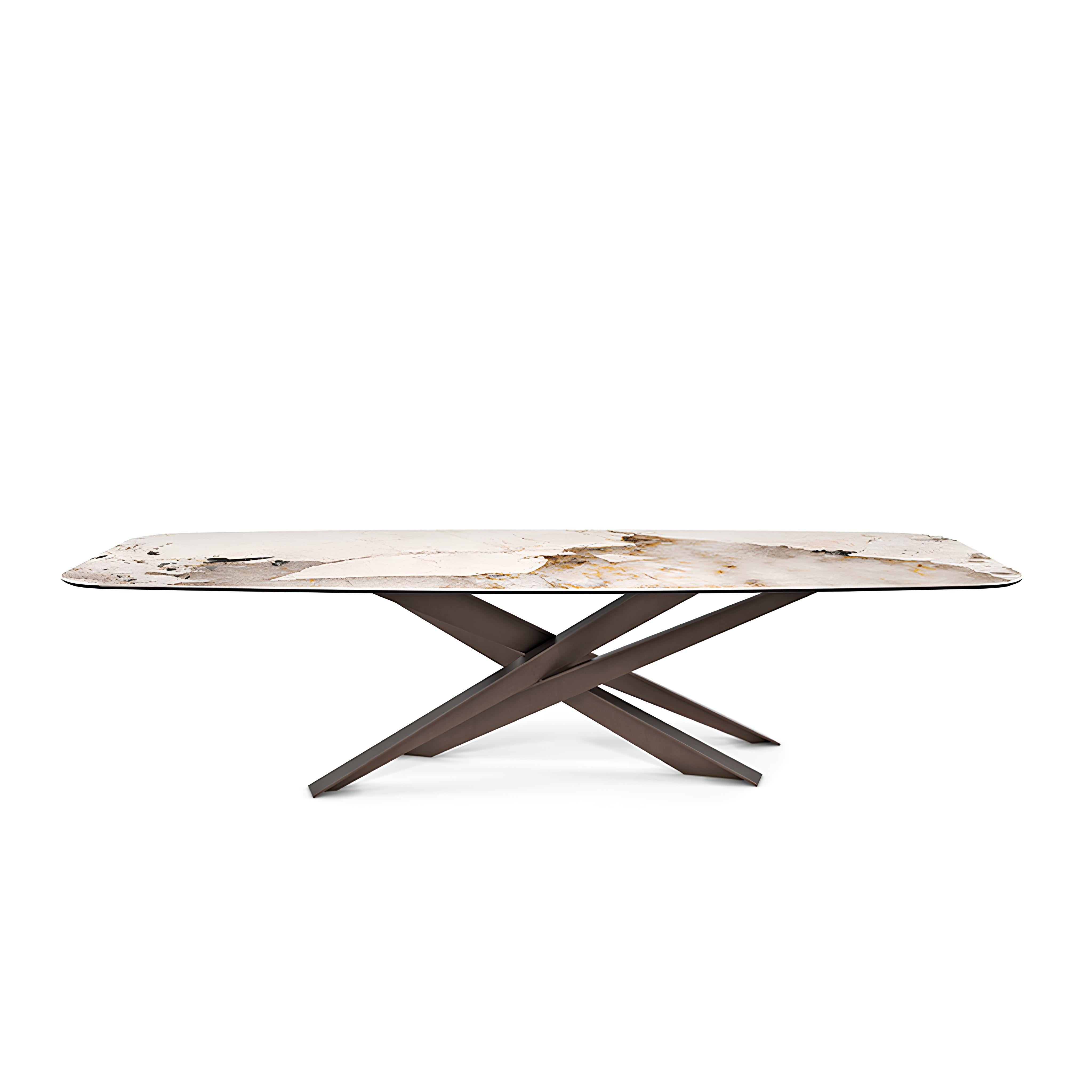 Modern tasarımlı masalardan oluşan Lancer ailesi, heykelsi, görkemli ve benzersiz bir stile sahiptir. Lancer'ı benzersiz ve değerli bir model yapan şey, güçlü bir mimari değere sahip tabanıdır. Dört bıçak havayı kesip birbiriyle kesişerek enerjik bir kompozisyon yaratıyor. Her bacak, çaprazlama ve bindirme fırsatlarını artıran bir T-kesiti ile tasarlanmıştır. Yapı bir ışık-gölge efektiyle güçlendirildi. Dikkat çekmekten korkmayan cesur estetik, çeşitli varyantlara uzanıyor.
